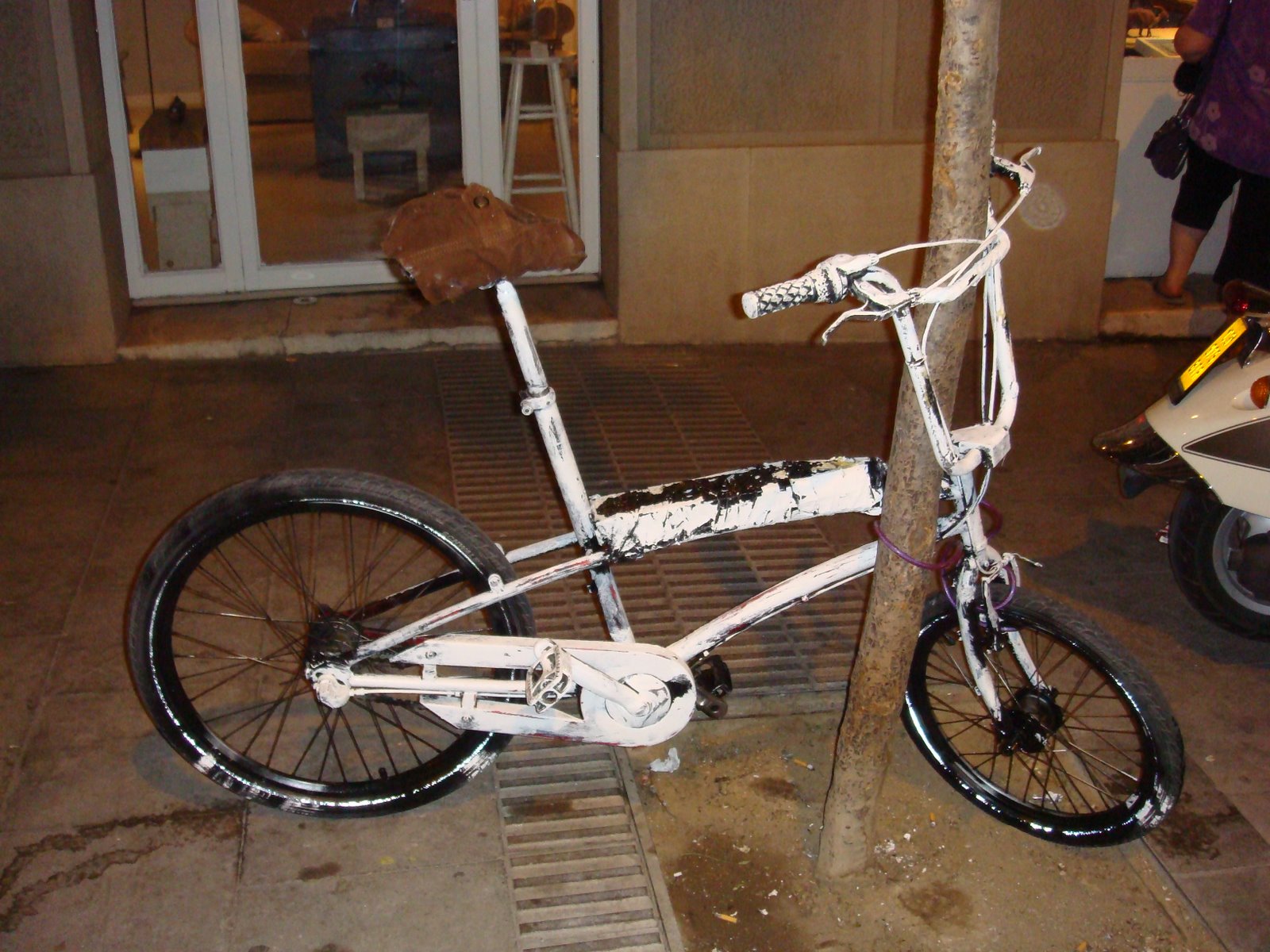I saw this at the Gracia festival. I really do wonder what the point of it is. It must be easier to just steal a normal bicycle. Or just buy a cheap one and save the money for saddle decoration and paint job.