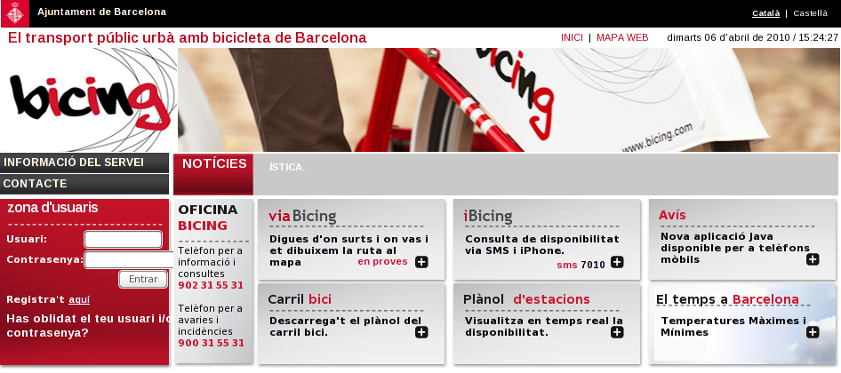 I just noticed that bicing has a new website. Some of it doesn’t seem to work and they are still using the old map, which is rather horrible slow. And the news page still has no RSS feed. So nothing new really, lets hope they are still working on it.